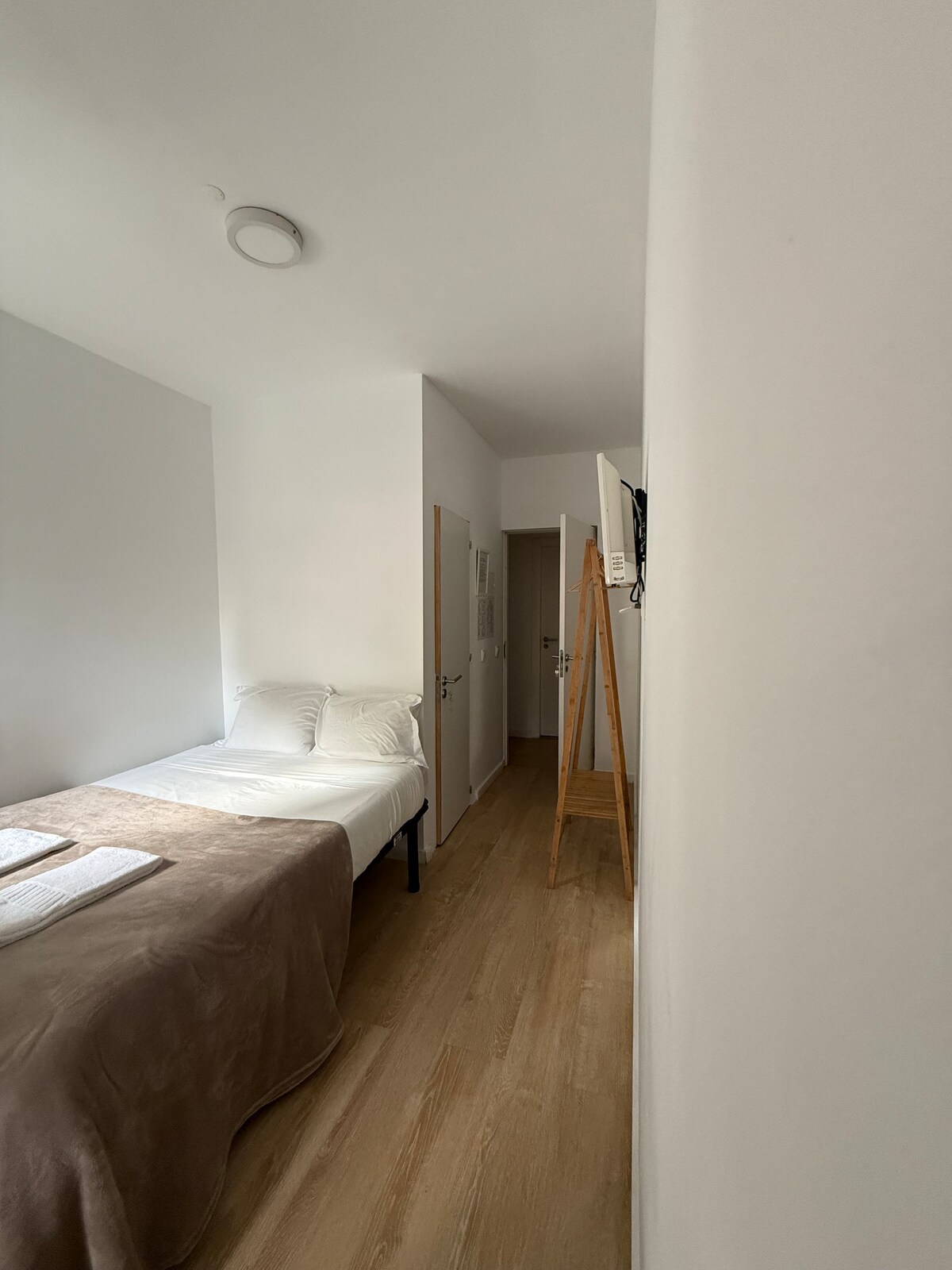Quarto privado com cama de casal, kitchnette, casa de banho privada, televisão e ar condicionado. Espaço ótimo para quem pretende passar noites tranquilas a 5 minutos do aeroporto de Lisboa.