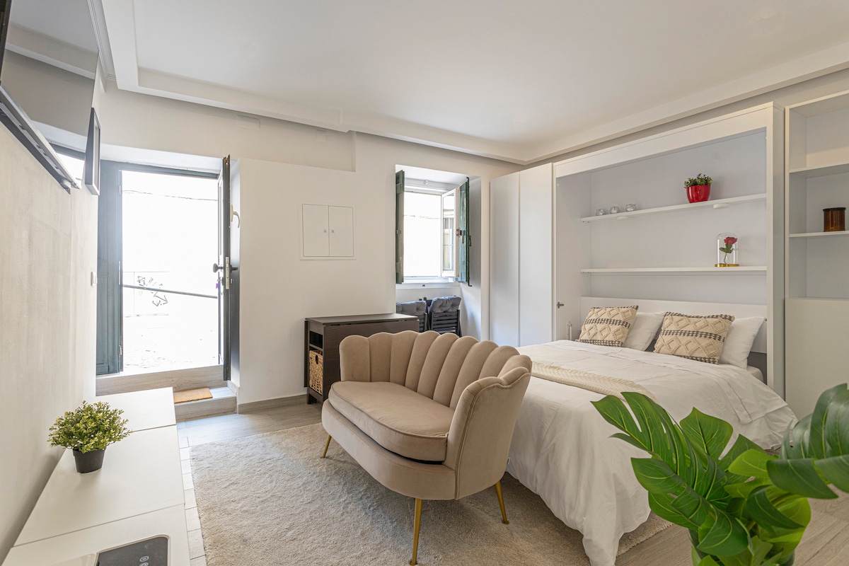 This 1 bedroom apartment Is located in the heart of Rossio. It is a fifth floor on a 19th century building, without elevator. Great views throughout the apartment, with everything nearby. It is an ideal apartment for a couple (2 people), that don't mind climbing stairs. Fully equipped apartment with free Wi-Fi. *2025 Update* The City Hall as granted Rooftop Carmo, which Is a Bar/Restaurant across the street a Loud Sound Permit. Ear plugs will be provided. The Living room ceiling was switched.