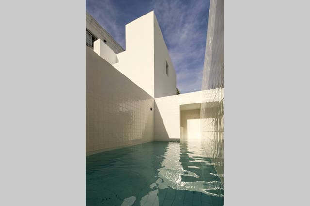 Resulting from the rehabilitation of a small medieval building in Alfama, the Casa da Amendoeira is structured around a series of courtyards and sunny balconies, interspersed with cozy interior spaces. The sound of running water from a fountain and a hammock are enticing prospects on warm summer nights in Lisbon. One of the courtyards is flooded with water, forming a pool. On the last floor, a balcony overlooking the river and the rooftops of the city is the ideal spot for a glass.