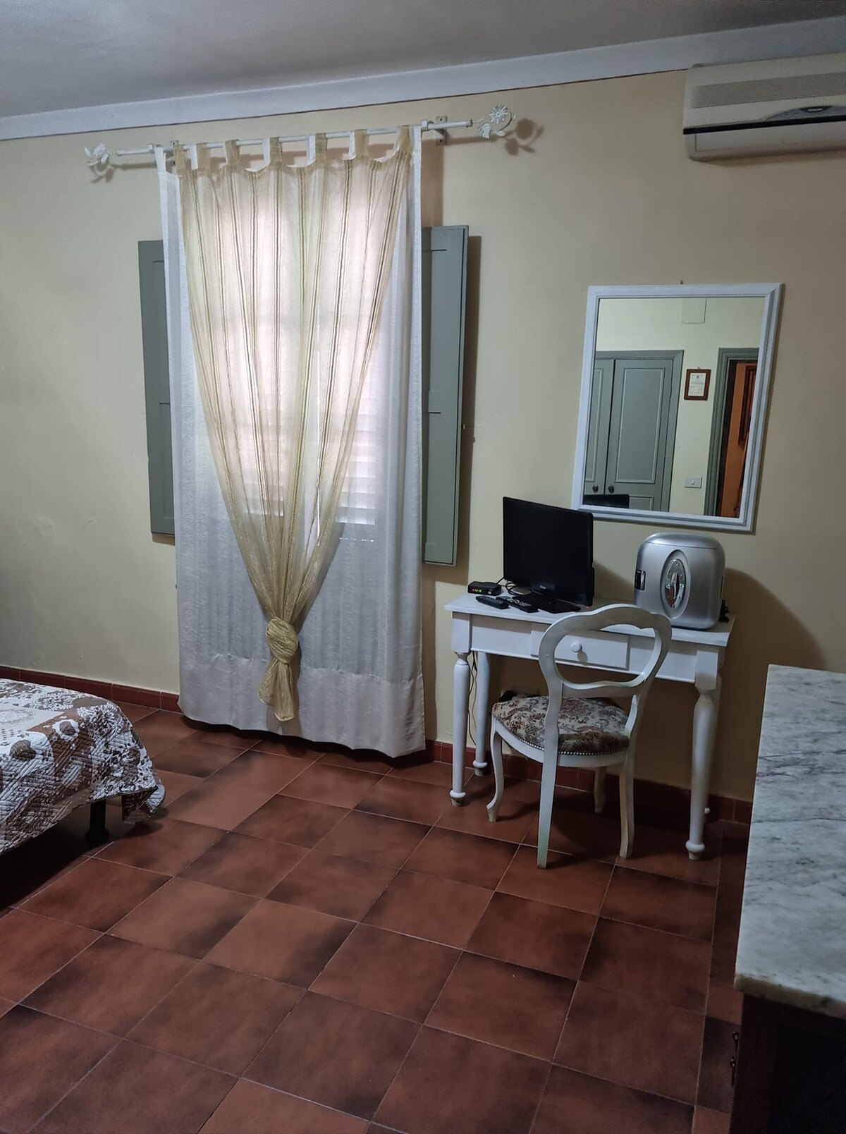 English Sunny and spacious double bedroom with antic furniture - inside private bathroom - balcony on green. Air conditioned in summer (from 15th June to 15 Sept) Mini fridge. wi-fi, tv. No kitchen use. Tram T1 at 100m. Quick and direct to city center and central station. Modifying time check-in is possible according to disponibility.