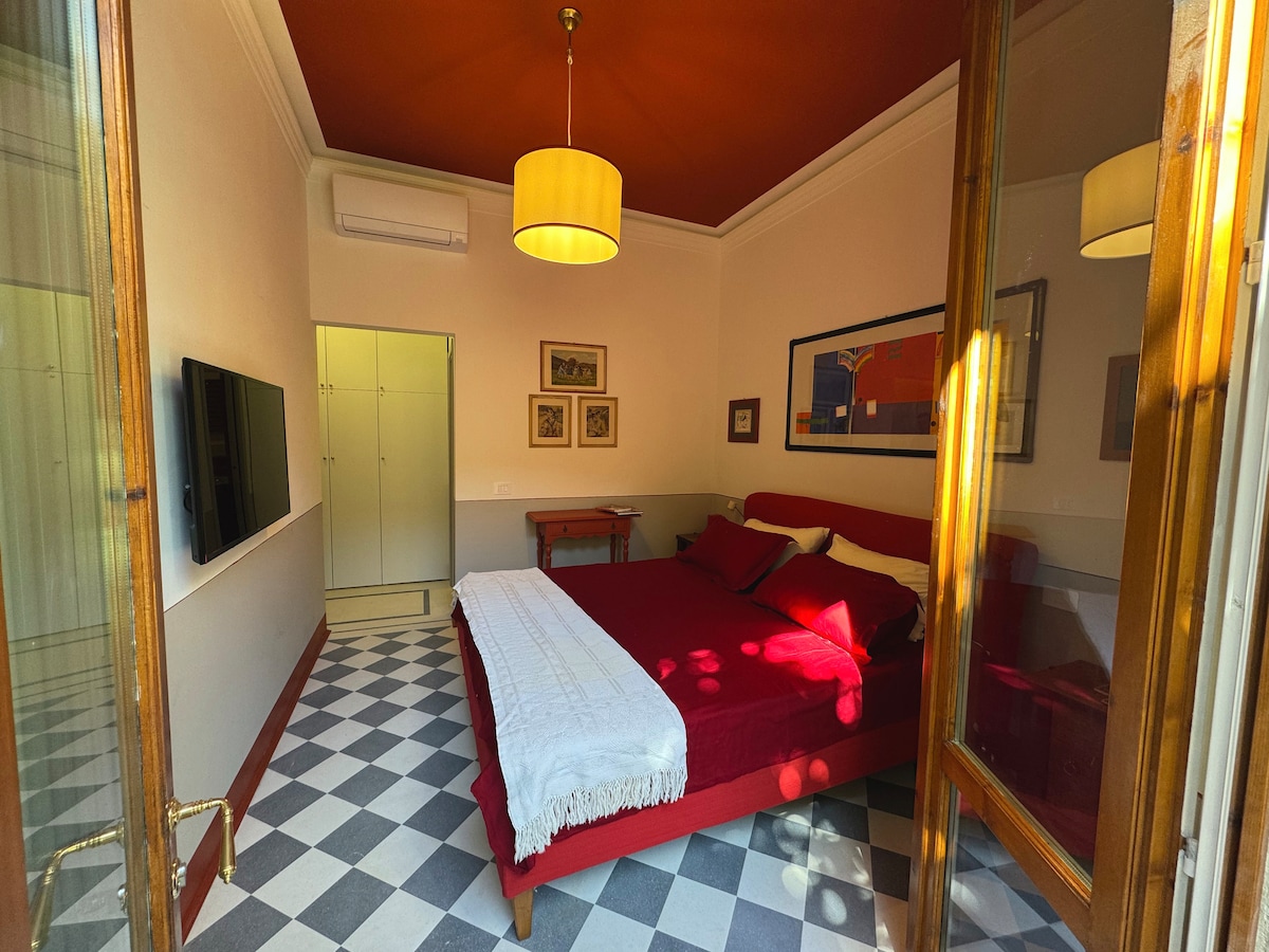 Studio in the center, ancient palace with elevator, pedestrian area, 5' from Piazza Santa Croce (550 m), 10' from the Uffizi (900 m), the Duomo (900 m) and Piazza della Repubblica (1 km). Lively university area with restaurants, market, supermarkets, pharmacies, transport. Large parking 400 m away. Kitchenette, windows with sound-reducing glazing (area very fashionable and busy, especially on weekends). Double bed 150x200, extra futon for children under 10. Air conditioning from June.