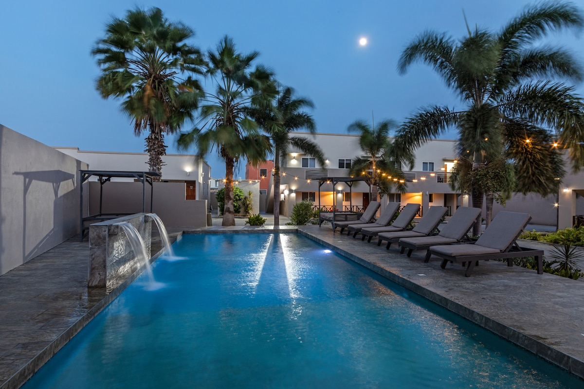 Dreaming of Curaçao? Live the local experience!Book our cozy 1-bedroom apartment for comfort and convenience! We're centrally located near the airport, shopping, and the beautiful sea. With Top Restaurants within 5 mins. Enjoy a refreshing pool and tropical vibes. Peaceful and secured neighborhood. Benefit from free on-site parking and AC for a cool stay. Equipped with Fast Wifi, smart Tv’s and a nice kitchen so you can cook your own meals. Located 9 minutes away from the beach & downtown.