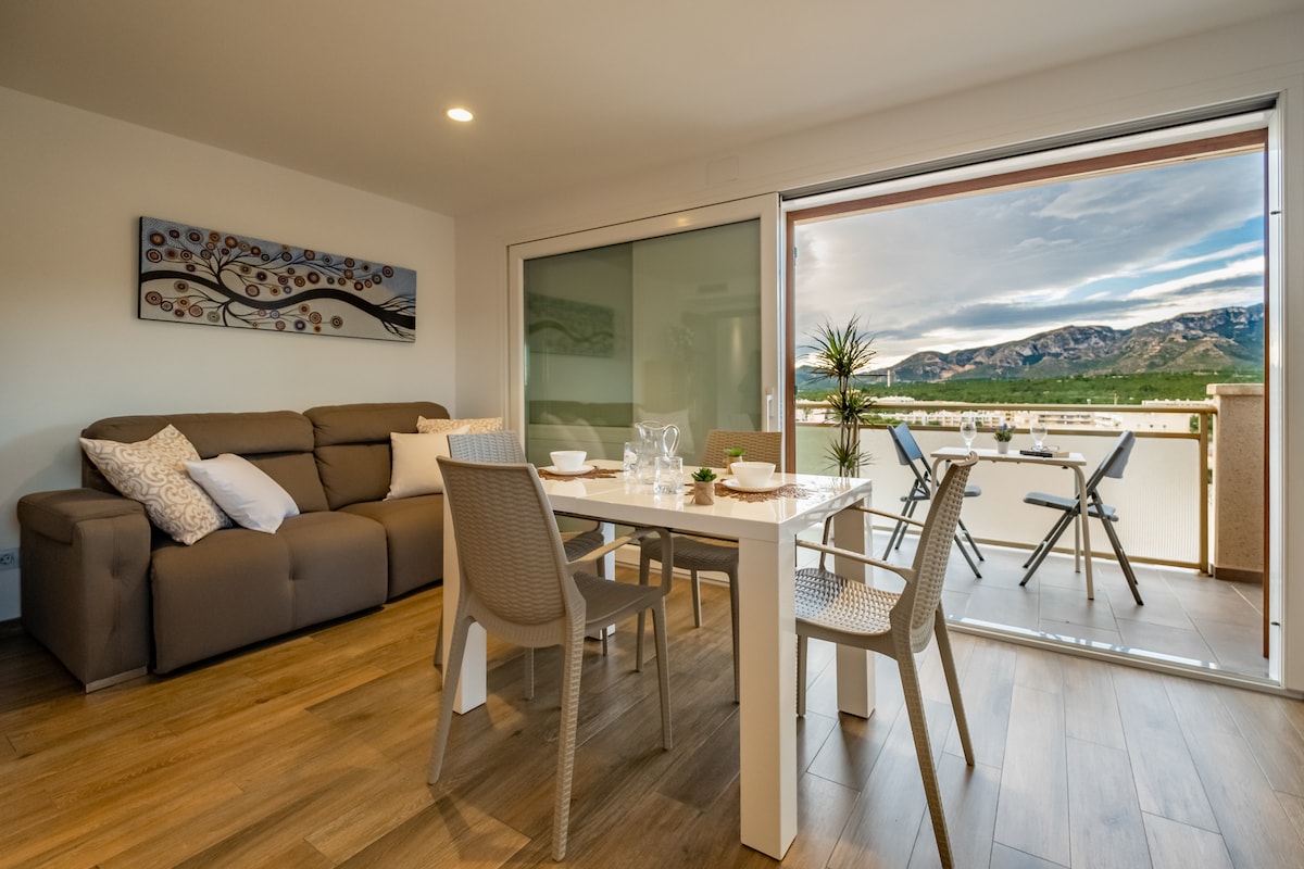 Apartamento con terraza, vistas playa y montaña