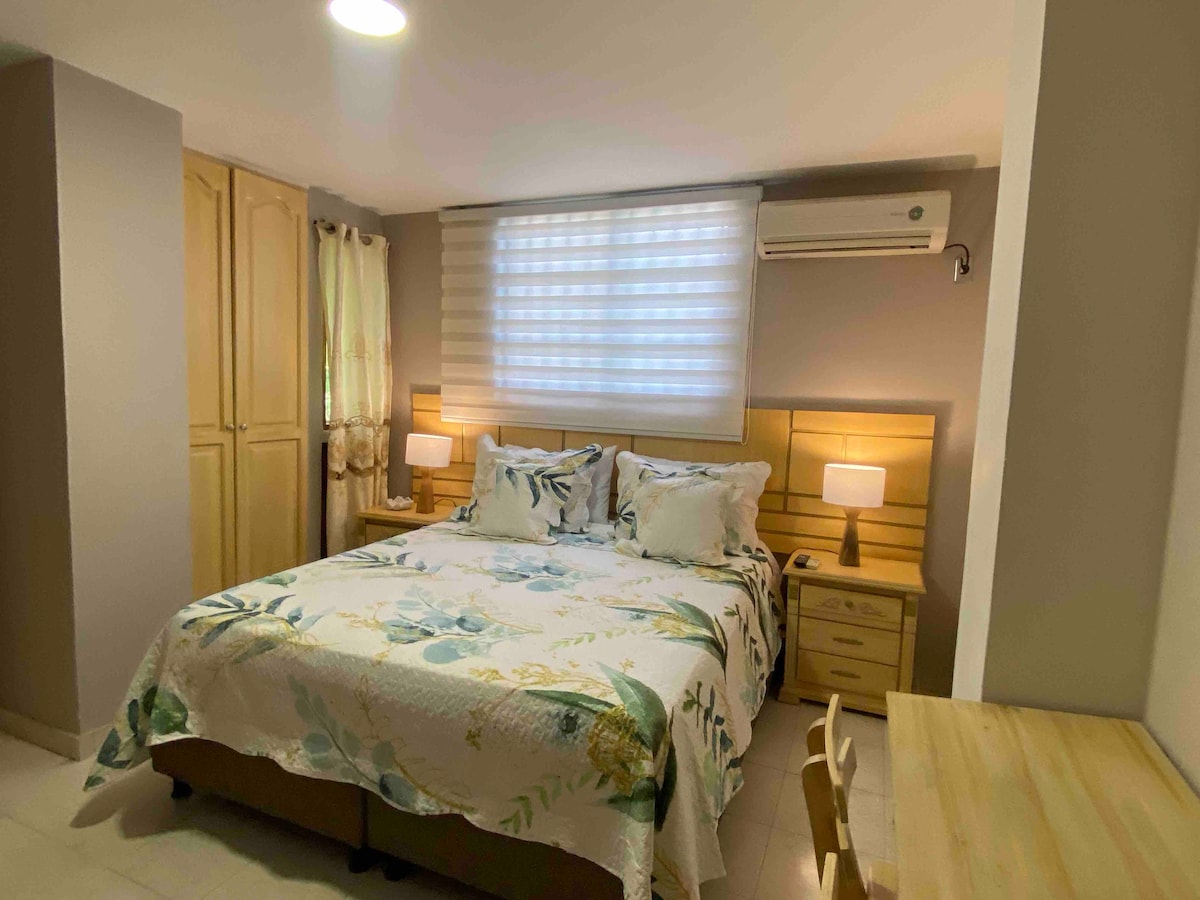 Disfruta de la sencillez de este alojamiento tranquilo y céntrico. Se encuentra muy cerca del centro comercial arrecifes en el Rodadero, cerca de Farmatodo, Ara y Olímpica. La playa del rodadero se encuentra a menos de 5 min caminando. Tiene muy buenos acabados, una Cama Queen, TV - Netflix, Wifi, Baño interno, Espacio para cocinar, Aire acondicionado. Muy cómodo y a buen precio.