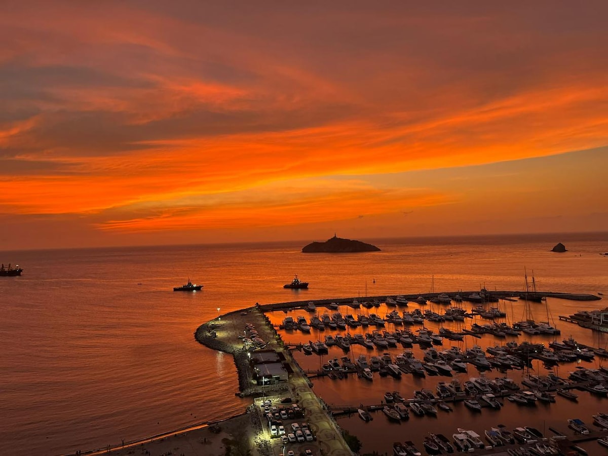 Suite nueva de lujo con jacuzzi en el balcón. Está ubicada en el mejor y exclusivo sector de Santa Marta. Está al lado del hotel Hilton , hotel Irotama y Hotel Mercure. cuenta con todo lo necesario, para pasar unas vacaciones inolvidables. tienes cocina dotada con nevera, estufa de inducción, Ollas, cafetera, utensilios de cocina, microondas y olla freidora de aire. Esta a 8 minutos del Aeropuerto. y muy cerca del centro comercial Zazue Mall. aprovecha precios de descuento y Reserva Ya.