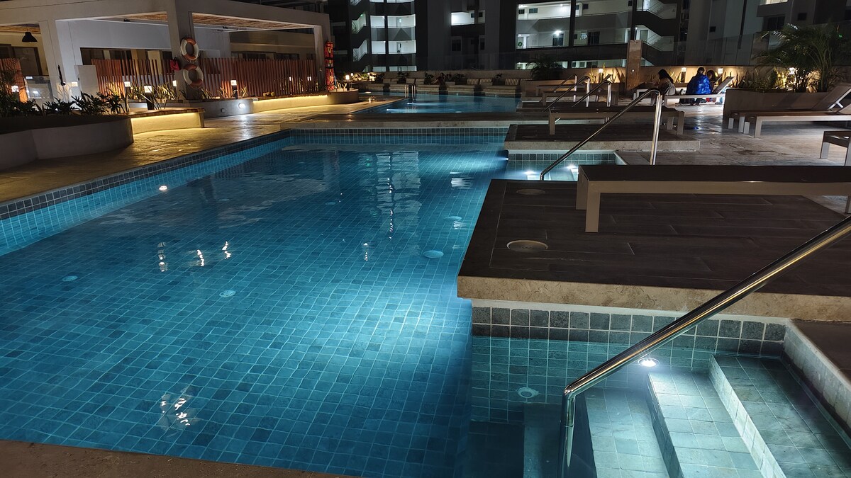 Las Vacaciones y el descanso merecen ser vividas de forma única, por eso tenemos una suite ideal para vivir una estadía inolvidable y con todo lo que necesitas para descansar, gozar, festejar y recordar. Tienes solo a 5 minutos caminando las playas de la bahía y los cocos, centro histórico a 8min caminando, frente a la Marina de Santa Marta Tienes un Carulla al lado del edificio