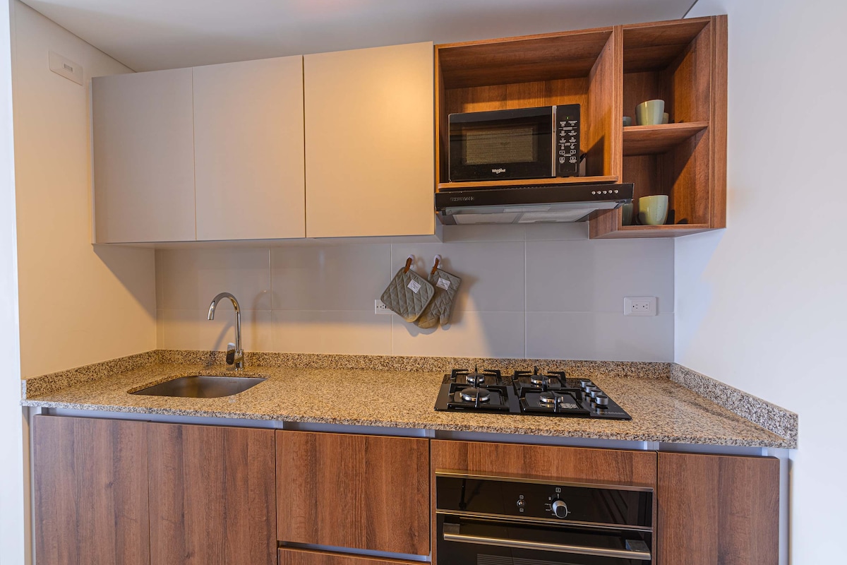 Located in front of one of the most beautiful beaches of Santa Marta, Bello Horizonte. The property is new, modern and fully equipped. It has a balcony that will allow you to enjoy the incredible view, a double bedroom with a queen size bed, a double sofa bed and a single one in the living room and an opened plan kitchen, all of them with A/C. Wifi, land TV cable is also available, as well as a parking slot, gym, sauna and steam room. Just 2 minutes walking to the beach and the shopping center.