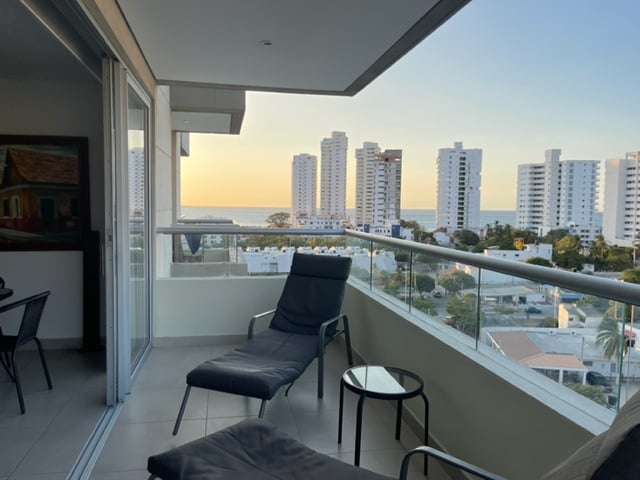 Lujoso apartamento con vista al mar cerca de todo y muy tranquilo y fresco,ideal para unas vacaciones , todo queda cerca y el edificio está nuevo y cuenta con piscina, sauna y jacuzzis, café de Colombia gratis, para estadías de una semana o mas se cobra servicio de limpieza semanal. Para su seguridad y la de los demás huéspedes les colocaran una manilla a cada huésped y deberán pagar en el check in COP$20 mil en efectivo.
