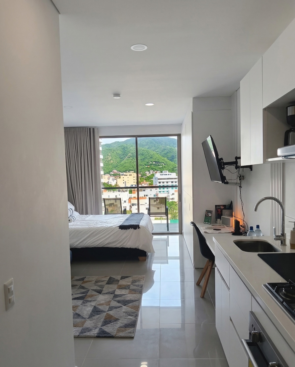 🔆Lujo y confort en Playa Salguero. Apartaestudio nuevo con WiFi de alta velocidad (900Mbs), ideal para relax o workation. Disfruta de piscinas, jacuzzis y coworking sin costos extra 💫LO MEJOR: Vistas: Balcón a la Sierra Nevada Confort: Cama Queen y cocina equipada 💫EXPERIENCIAS PREMIUM ($): Logística: Transporte privado (Aeropuerto) Chef en Casa: Menú personalizado (compras y preparación incluidas). Desayunos: A la carta A pasos del mar y comercio. ¡Reserva tu estancia profesional!