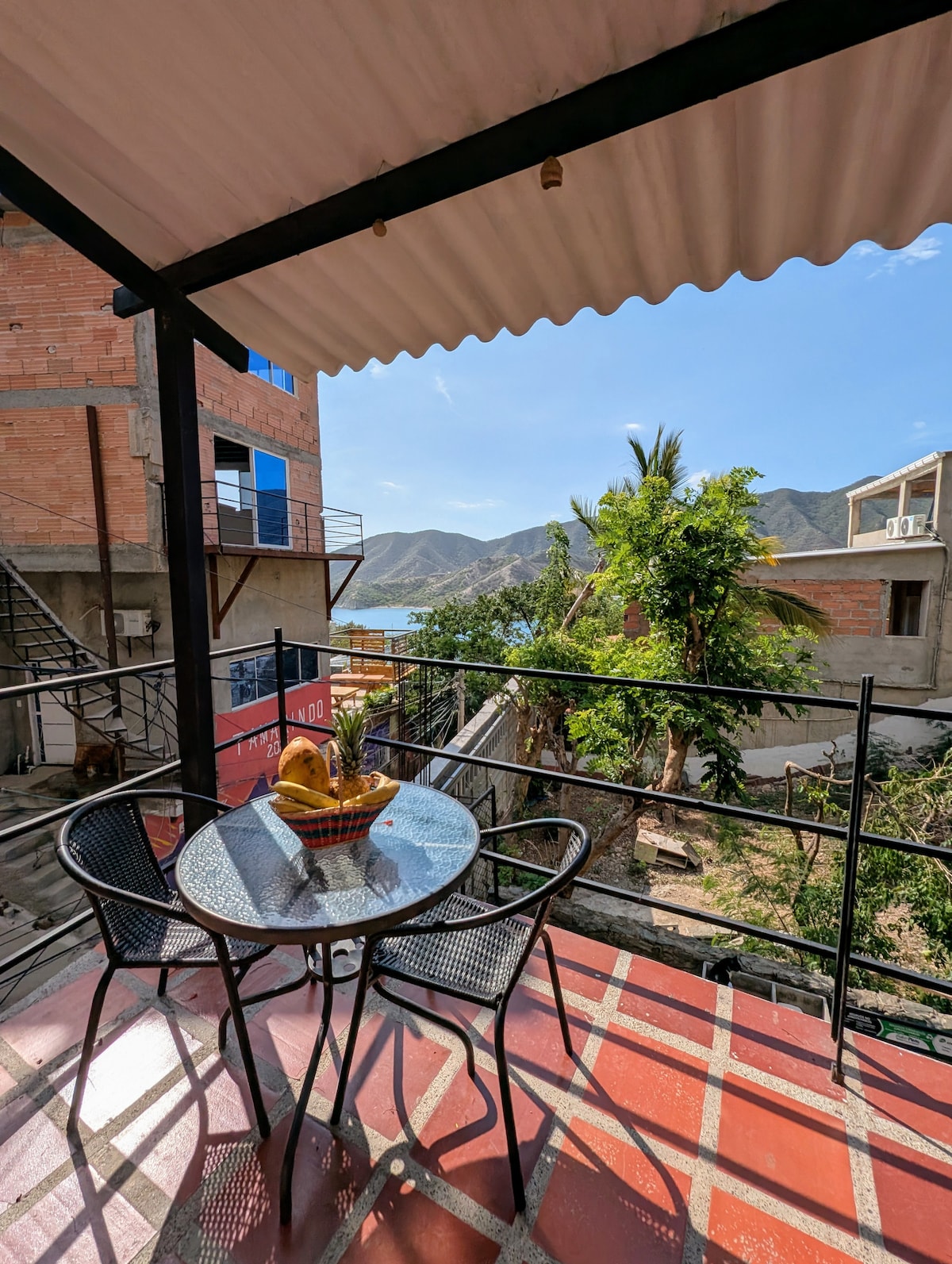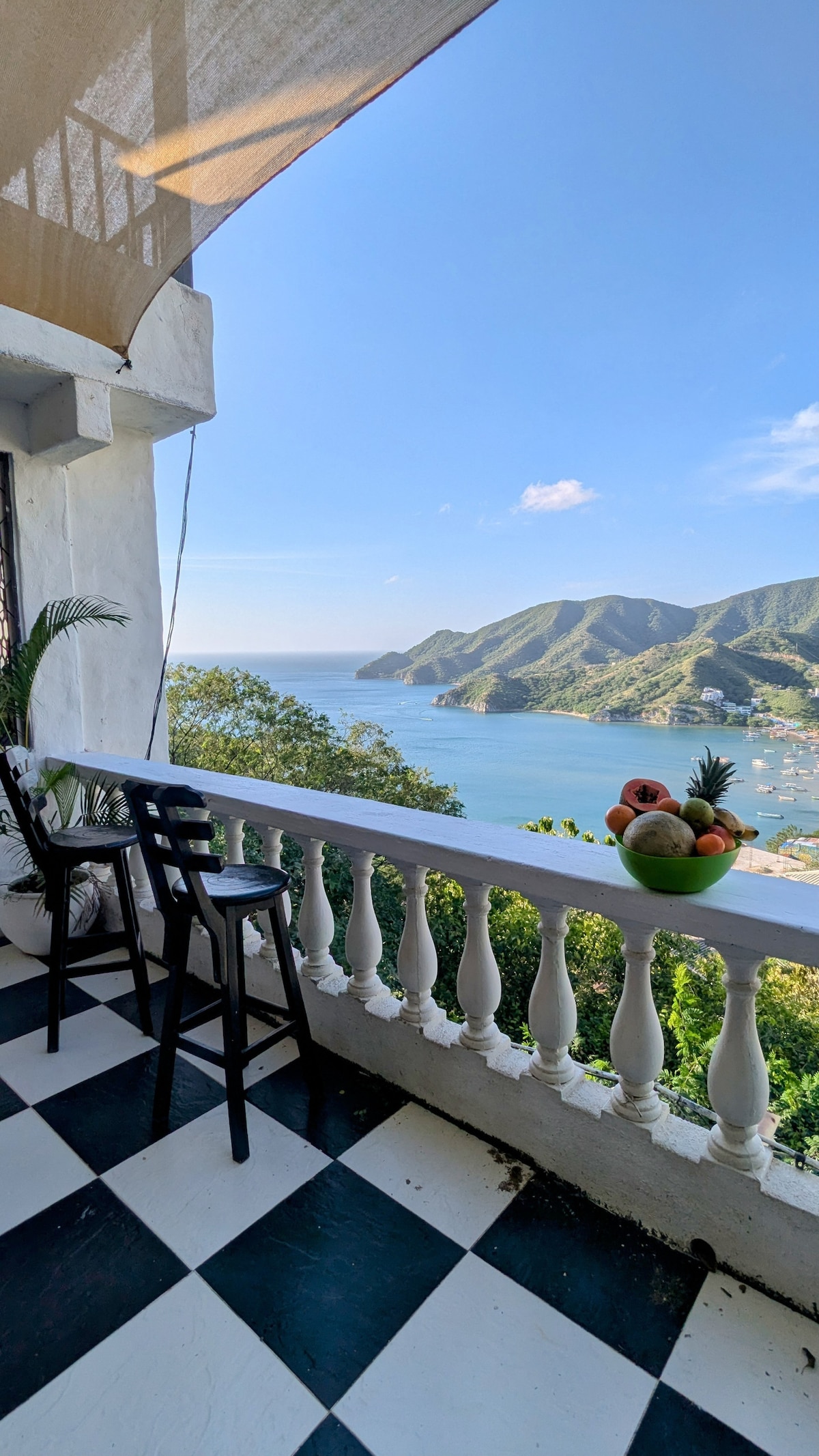 Enjoy your cottage with a private terrace and sea view and relax with the beautiful view of Taganga Bay! Ideal for a couple's break, with a room with a double bed, air conditioning, smart TV and a closet. On the terrace there is a table with chairs! , or to work since it offers 200 MG fiber optic internet! It has a bathroom and well-equipped kitchen. Located just 10 minutos walking from Taganga beach and restaurants!