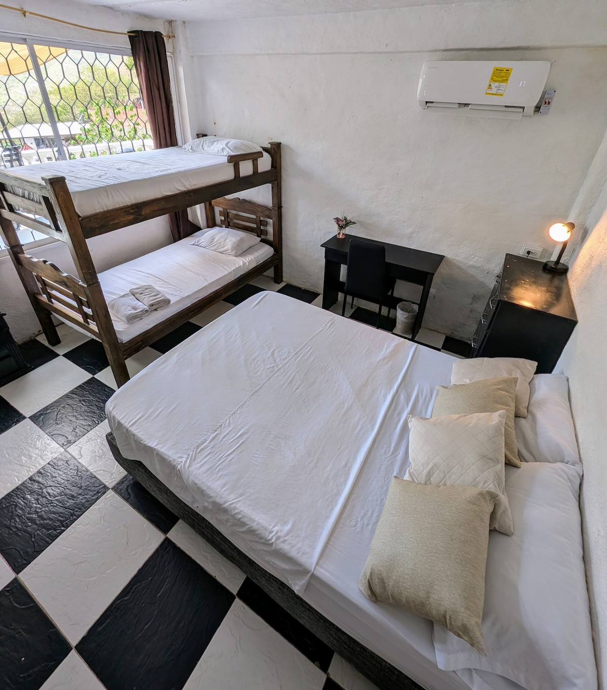 un exclusivo mini apartamento con entrada privada, se encuentra en el primer piso de casa mandala taganga , el espacio es cómodo y limpio, con baño privado, mini cocina, zona para trabajar ,ventilador, decorado con piezas de ecoart, luz solar para wifi ,ayudando al medio ambiente. ideal para estancias largas. En estancias largas se incluye la lavanderia y limpieza cada semana. Damos descuento en cursos de buceo. una experiencia unica a solo 5 minutos de la playa.