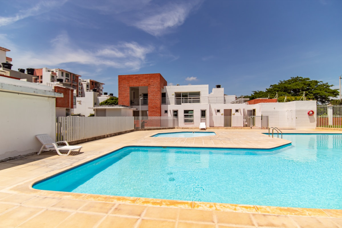 A *fully furnished modern suite* in Santa Marta just a short walk from Salguero Beach & close to El Rodadero, one of the city's most popular tourist spots. ✨ Highlights: Rooftop pool, Jacuzzis, Sauna, Turkish Bath, Game room, & Gym. MORE ⬇️. The building has free parking for visitors, subject to availability. The suite has a mountain view. Whether you're looking to unwind or explore, this suite is the perfect base for your time in Santa Marta.