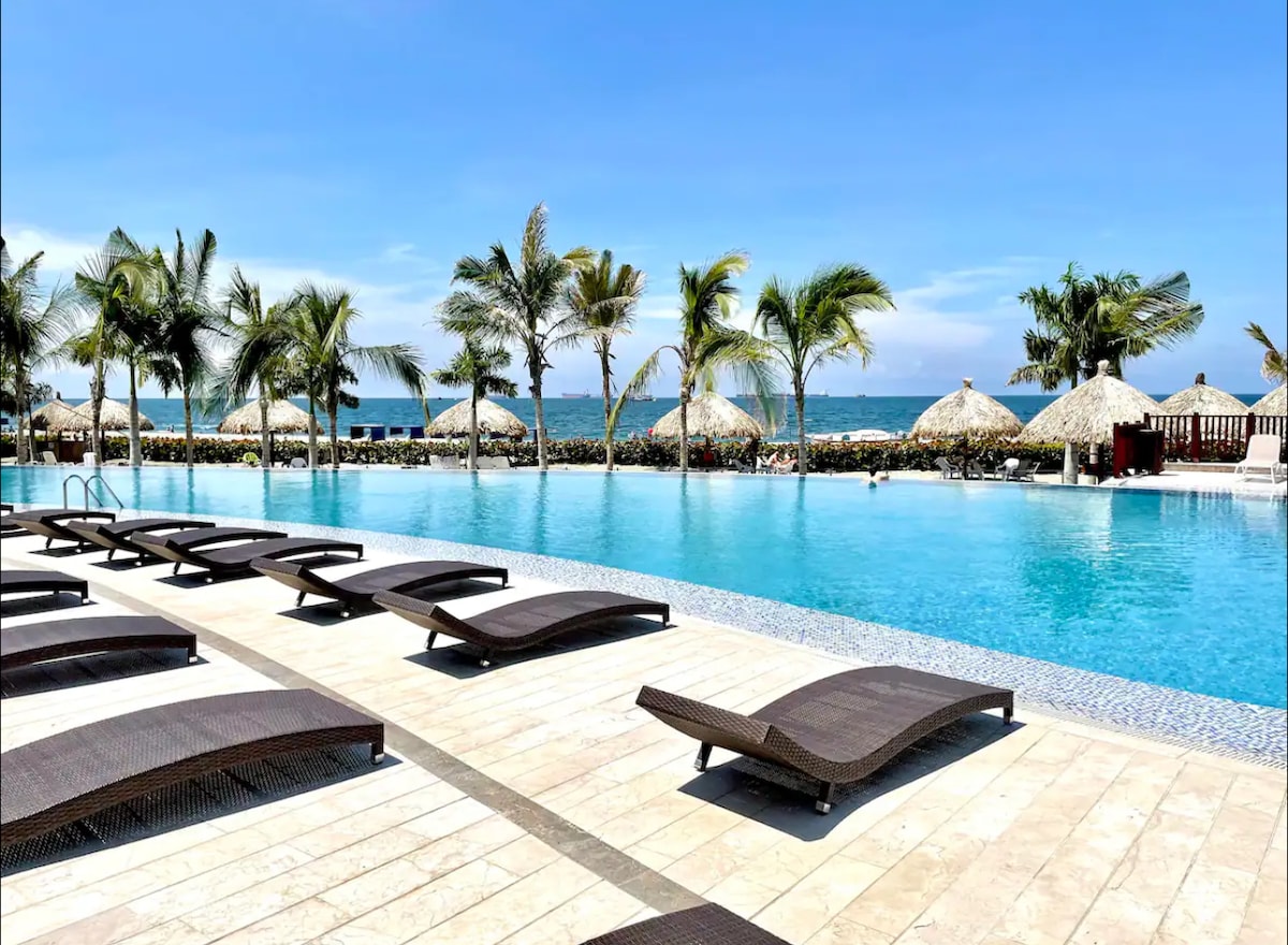 🏝 Salinas del Mar – Tu paraíso frente al mar 🌊✨ Disfruta de un espectacular apartamento en primera línea de playa, con todas las comodidades para unas vacaciones inolvidables. Relájate y diviértete con sus piscinas cristalinas, jacuzzis, turco y sauna, vive momentos únicos. Mantente activo en el gimnasio con vista al mar y termina el día en sus amplias terrazas respirando la brisa marina. 🌴 Un lugar perfecto para descansar, disfrutar y vivir la experiencia completa del Caribe.