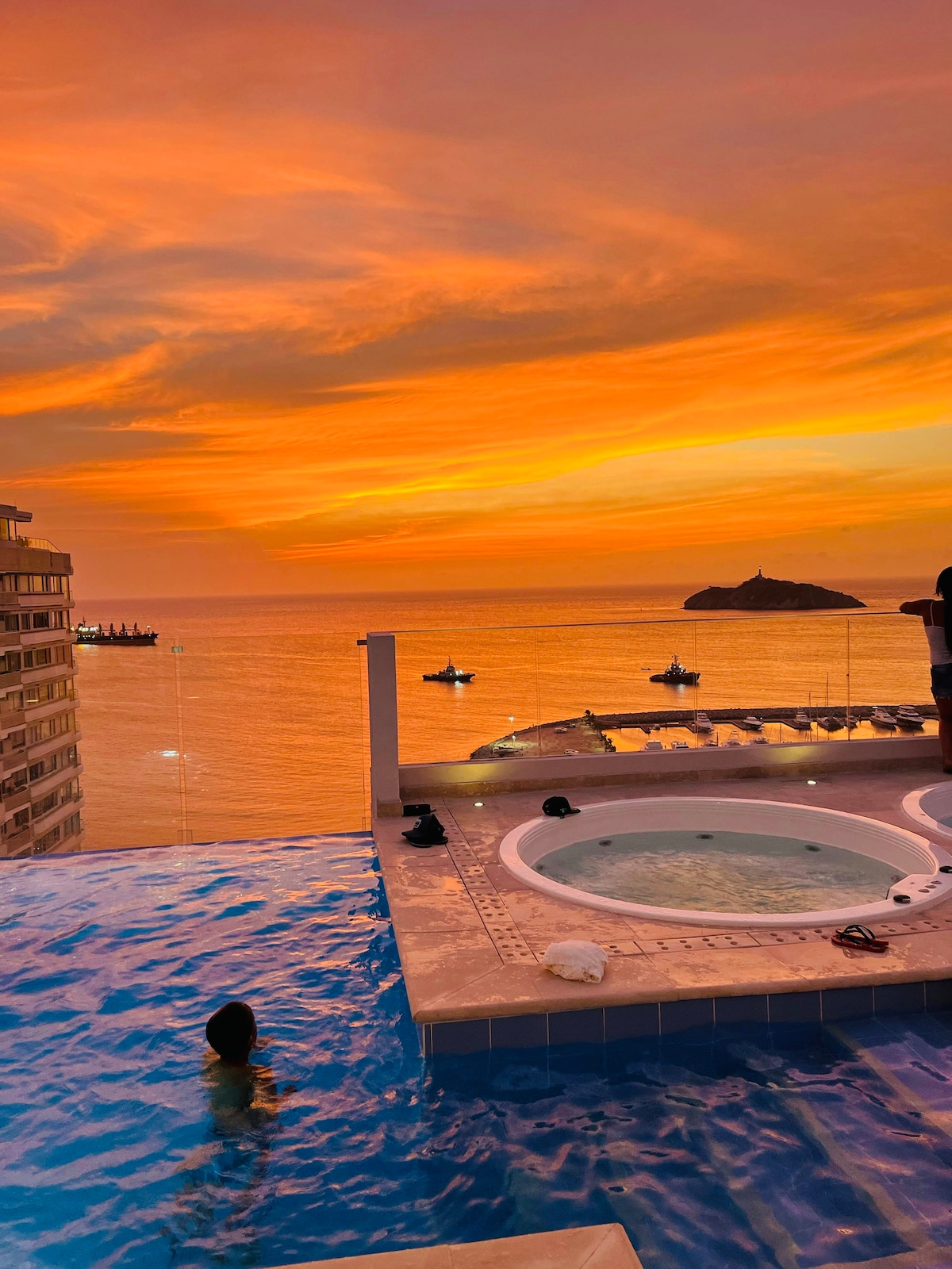Head up to the rooftop where you can relax in two swimming pools! The apartment is walking distance (around 5 minutes) to the bay area, the beach and the best gastronomy and culture the city has to offer. Feel free to hit us up for recommendations! The apartment’s central location is perfect for visiting the local beaches as well as the most famous nearby attractions: Tayrona Park, Palomino, Minca, and Lost City (to name a few!).