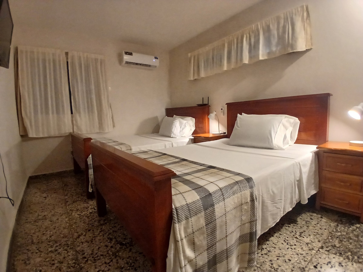 Comfortable Apartment in Varadero downtown, located in a safe residential neighborhood, just one block from the beach, near to bars and restaurants. Equiped with AC, hot shower, large flat screen TV, Safe, Kitchen, microwave, coffee maker, Large Fridge, Hairdryer, Iron and private Wi-Fi Hotspot (One Hour Card Included).