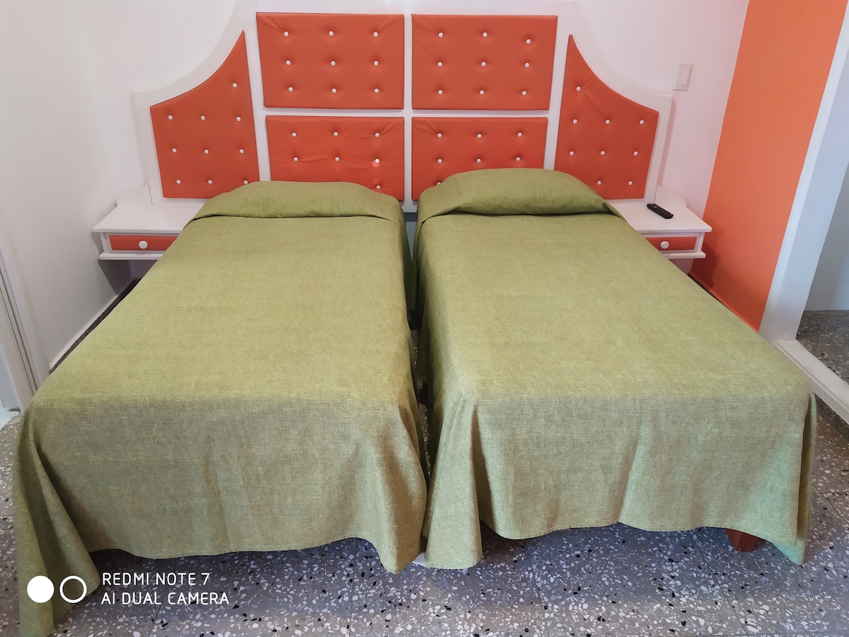 Es un apartamenento independiente amplio. Con un dormitorio con dos camas, (una grande y otra más pequeña), aire acondicionado, caja fuerte, perchas para la ropa y televisor. Un baño con agua fría y caliente; cocina equipada con todo para la elaboración de alimentos (microondas, cafetera, tostadora, ollas, fogón de gas, refrigerador), una pequeña mesa plegable y tres taburetes para comer, uso de la lavadora. Una terraza común rodeada de plantas con sillones, mesa y sillas y un hermoso jardín.