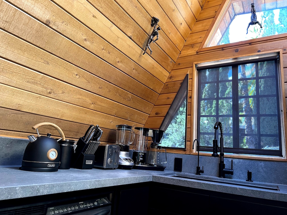 Amazing free standing cabin tucked away between the trees with views of surrounding hills. Enjoy the wood burning stove over a complimentary bottle of wine. Take an outside bath (private) and relax in our new barrel steam sauna (private), or watch a movie on the couch. Come with the kids or your furry friends and take them on a long hike right outside the cabin doors with wild peacocks roaming the grounds. Book a private massage on premises or do yoga on the patio. Something for all!