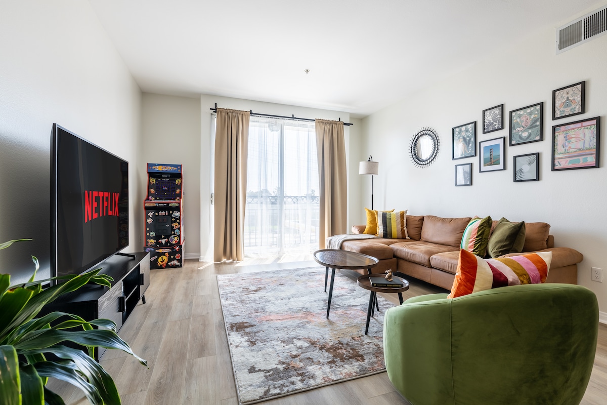 🌟 Elegant Modern 1-BD Retreat in Santa Monica 🌟 Escape to a sleek 1-bedroom apartment with proximity to the beach. This stylish space features a cozy queen bed 💑, modern decor 🏡, and a fully equipped kitchen 🍳. Enjoy high-speed Wi-Fi 📶, a smart TV 📺, in-unit laundry 🛠️, and secure parking 🚗. Perfectly located near dining 🍽️, shopping 🛒, and coastal adventures 🏖️—your ultimate getaway awaits!