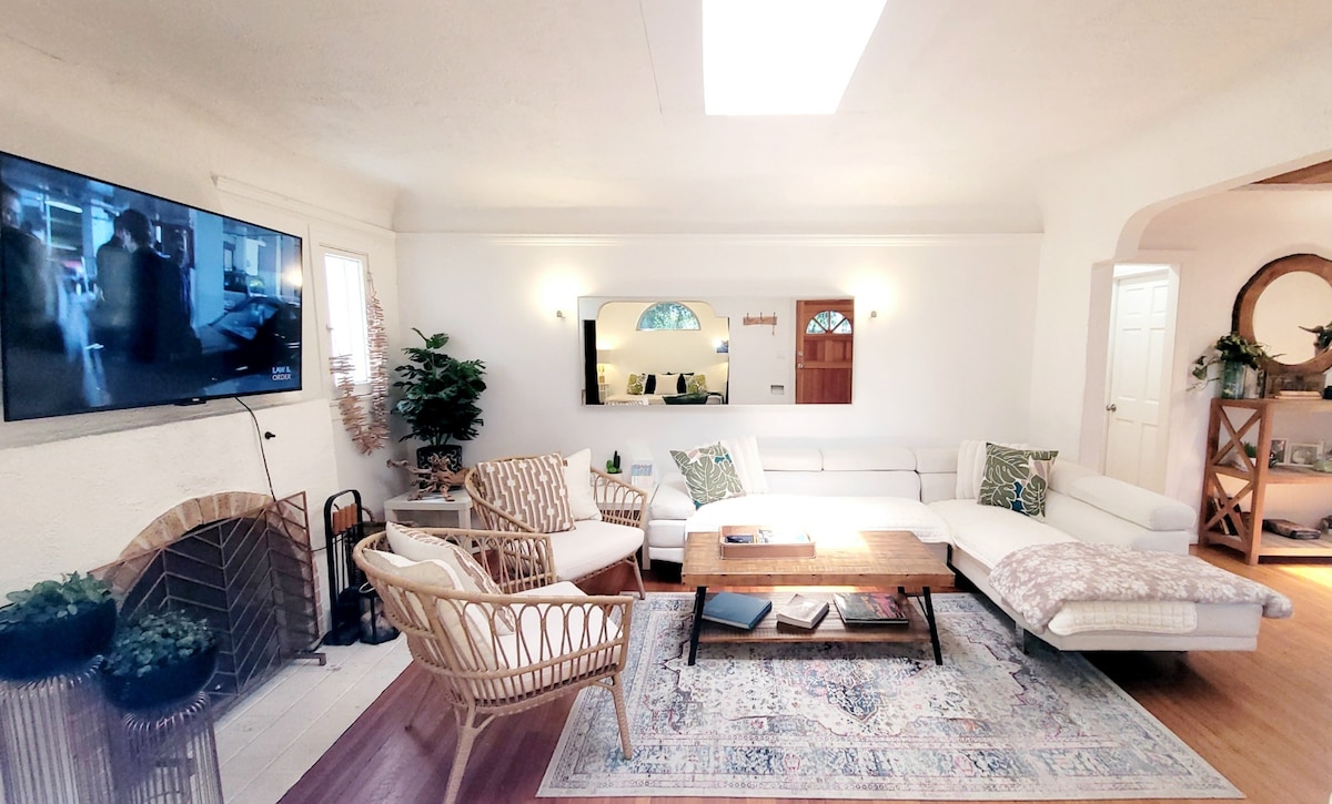 Private, large Guest Suite of 1200+/- sf in a unique CA Mission Revival Style home. Convenient to all, The Beach/Pier, 3rd St. Promenade, Montana Ave., Downtown & Main St., Farmer's Markets, Restaurants are all nearby. HD/4K TVs, Movie Library, HBO, Disney+, Netflix, Prime Video, Apple TV+, Hi Speed Wi-Fi. Yard with BBQ, chaise lounge, Dining for 6 indoors & out. Weekly linen/towel changes are included. Licensed & Compliant with City Laws as the Resident/Host is in residence during your stay.
