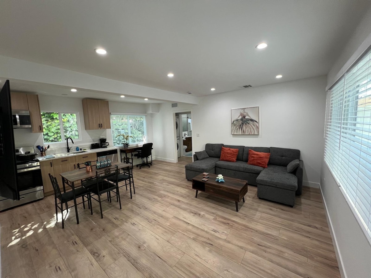 Enjoy a modern 1-bedroom apartment near the beach 🌊 with contemporary furnishings 🏡, a queen bed 💑, and a fully equipped kitchen 🍳. Amenities include high-speed Wi-Fi 📶, a smart TV 📺, in-unit laundry 🛠️, and secure parking 🚗. Close to dining 🍽️, shopping 🛒, and coastal attractions 🏖️, it's the perfect blend of comfort and convenience.