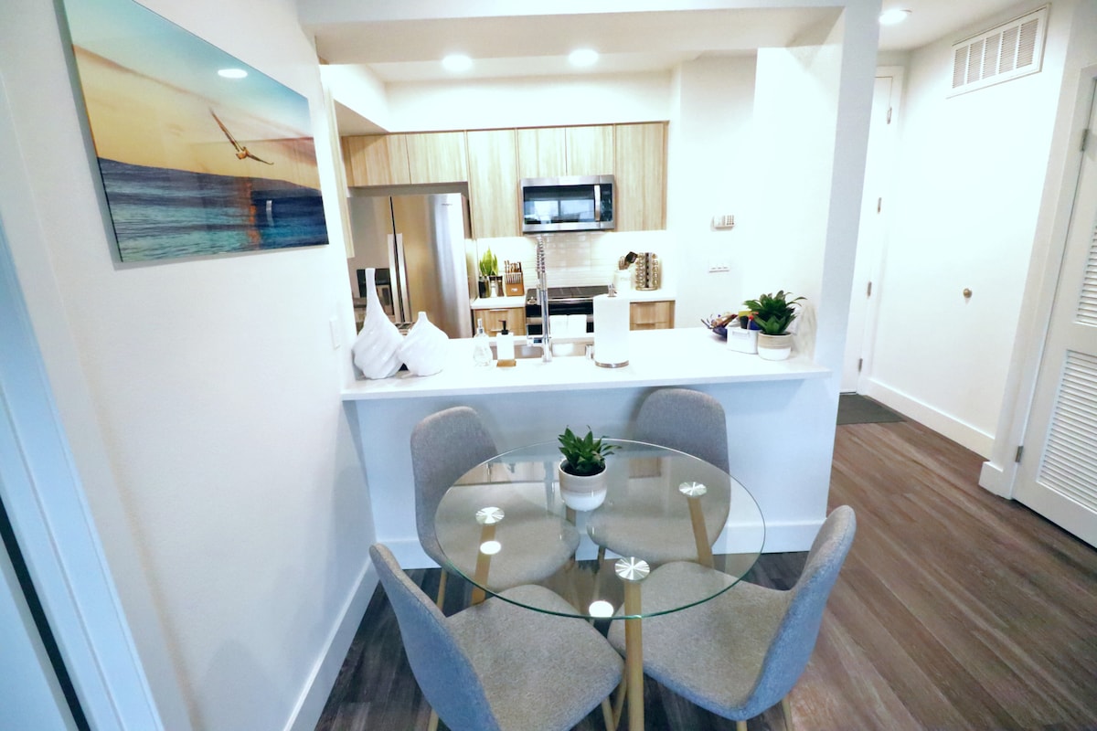 Enjoy a modern 1-bedroom apartment near the beach 🌊 with contemporary furnishings 🏡, a queen bed 💑, and a fully equipped kitchen 🍳. Amenities include high-speed Wi-Fi 📶, a smart TV 📺, in-building laundry 🛠️, and secure parking 🚗. Close to dining 🍽️, shopping 🛒, and coastal attractions 🏖️, it's the perfect blend of comfort and convenience.