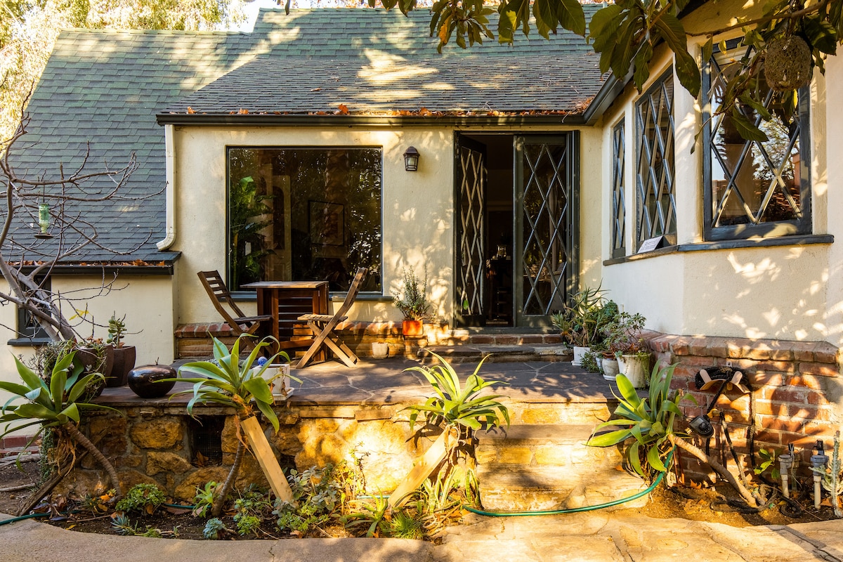 Dine under the trees on the custom-built deck, unwind in the hammock, play in the yard, and cook in a chef's kitchen in this charming 2 bedroom, 3 bed, 2 bathroom cottage on a quiet cul-de-sac in the Franklin Hills. Franklin Hills is a family-oriented neighborhood away from the hustle and bustle of Los Angeles, but close to the hiking, shops, and food in Silver Lake, Los Feliz, Griffith Park, and downtown LA. Peace and serenity in the city.