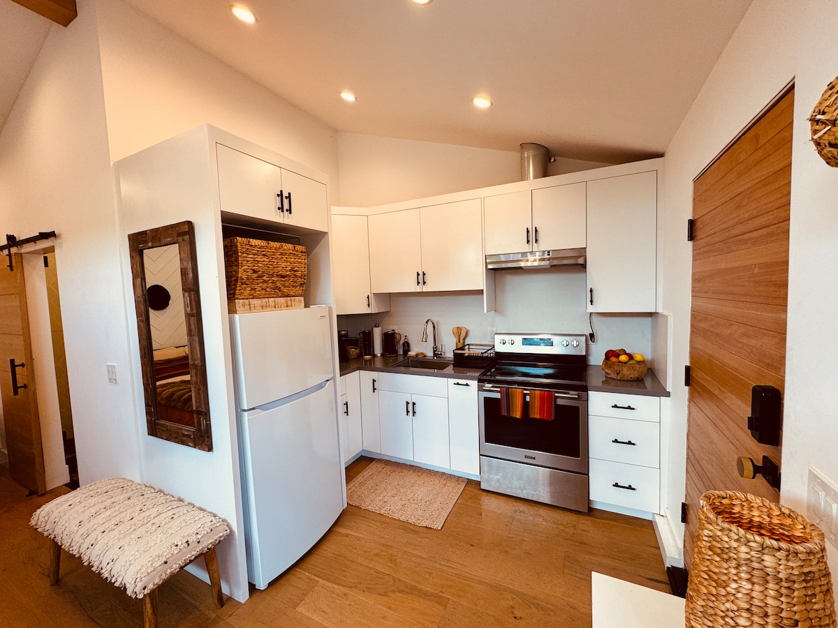 This newly renovated 500 sq. ft. modern Farmhouse Cottage, located in a safe, walkable neighborhood is the ideal getaway for two adults. Featuring a full kitchen and ensuite bathroom, this light, bright space has quartz countertops, wood floors, marble tiled bathroom, brand-new appliances and furnishings. Perfect for the visiting remote worker or traveler, we’re located just one mile from the heart of fashionable Culver City, 6 miles from Santa Monica, and 15 minutes from LAX.