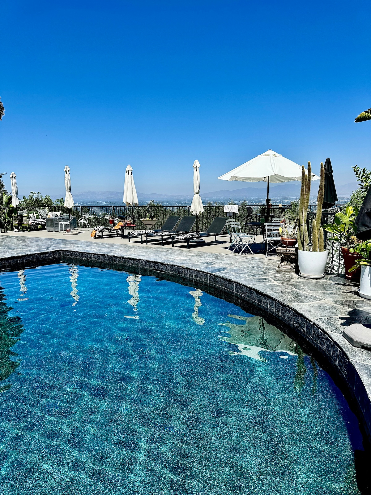 Serve breakfast in a gazebo in a leafy backyard. Stride across flagstones and slip into a tranquil pool. Snooze in a hammock. Return indoors to cook in a family-style kitchen. Discover a spa-like room and relax in a hot bath, or daydream in a beautiful succulent filled garden. Gorgeous guest home South of Ventura Blvd with parklike grounds and pool. Heart of celebrity studded Encino. Attached to the main residence by a sealed hall, this 5-Star oasis is a separate 1800 sq. ft. residence with own private entrance. Two queen beds, plus two pull out full sized beds and single mattress for kids. Sunlit ensuite-bathroom with double sink, large soaker-tub and shower upstairs. Dwn-Strs bathroom has large shower. Huge walk-in closet upstairs. Loft area with cathedral ceilings creates open feel for entertaining or relaxing. Fully equipped kitchen with service for eight. 2 flat-screen T.V.’s with full list of Direc-TV channels and hi-speed internet access. Shopping, restaurants, grocery, Starbucks and Jamba Juice less than a mile. Getty Museum and Universal Studios are a short drive, and Disneyland is under 45 miles. Close access to westside of Los Angeles (Beverly Hills, Century City, Santa Monica, etc.), and less than one mile from some of the best hiking trails in the city. You'll have access to: Remote gated driveway entry Entire guest home Private Entry Entire Backyard & Pool Private Parking We are here for our guests anytime, and usually never more than a few minutes away. Located in an enclave of multi-million dollar residences, the Encino area is home to many celebrities, and is one of the most desirable neighborhoods in all of Los Angeles. Explore close by Ventura Boulevard, a 20-mile stretch of shopping, restaurants, eclectic shops and more. Centrally located to Beverly Hills, beaches, museums and downtown, this area truly has it all. Please note that we have 2 very friendly dogs that live in the main residence. They are NEVER allowed in the guest house, whether we have guests in residence or not. If you or your family has an allergy or is otherwise disinclined to be around dogs, it's quite easy for us to make sure that they are confined to areas where guests won't interact with them when they are coming, going or in the backyard. If not, and you'd like to meet our pooches, then "woof-woof," because they'd love to meet you!