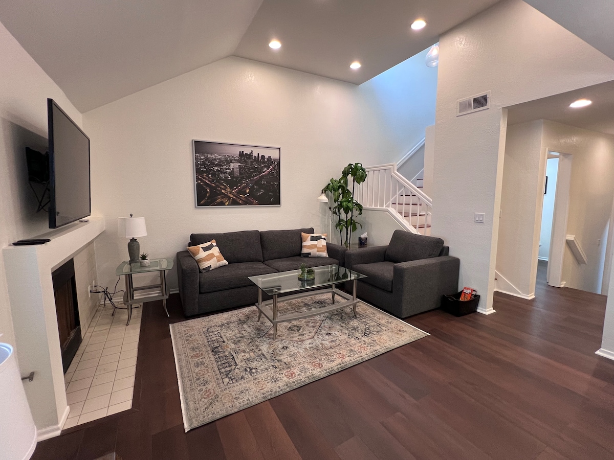 Welcome to your peaceful oasis with upscale amenities. This 2 bedroom/2 bath street facing townhome is the perfect stylish base camp or stay-cation retreat. You'll enjoy two ensuite bathrooms, full kitchen, easy parking and blazing fast wifi. Located on a beautiful tree-lined street, you're walking distance to downtown Culver and central to everything LA has to offer. Soak up the sun on your private outdoor patio or enjoy the shared common area fire pit and outdoor tubs.