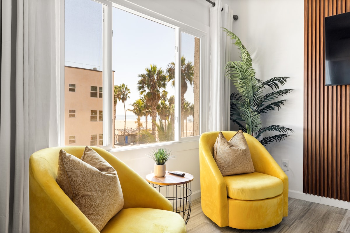 Stay in a charming studio located in historic building where Charlie Chaplin once lived, just a block from the iconic Venice Boardwalk! This cozy space offers a partial ocean view and is equipped with everything you need, including a comfy bed, small couch, and fully stocked kitchen. The restored bathroom features a vintage bathtub with a shower. Experience the history and beach vibes of Venice from the perfect spot!