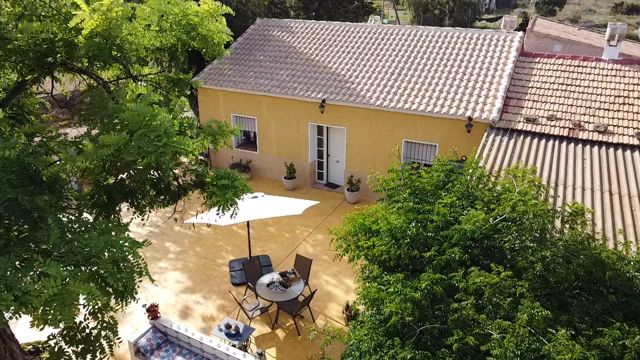 Esta acogedora casa rural data del año 1780, siendo en sus orígenes un horno de pan. Se encuentra en una finca rodeada de naturaleza, frutales y jardines, perfecta para desconectar y descansar en pareja. Cuenta con piscina privada de uso exclusivo de los huéspedes, barbacoa, pista de petanca, mesa de ping-pong, así como aparcamiento propio dentro de la finca. Situada en una zona apartada y tranquila, pero a escasos 2 kilómetros del pueblo y a 9 kilómetros de Alicante capital y playas.