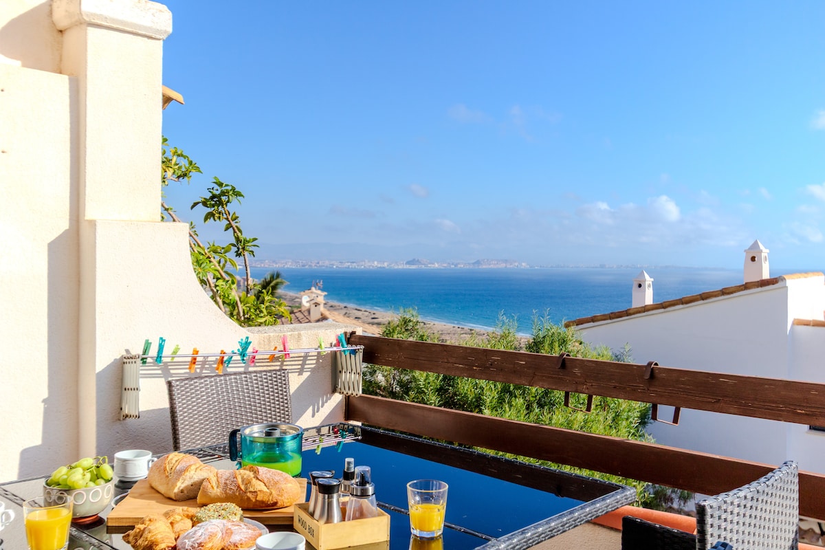 Mediterranean Sea view that seems to go on forever. This fine apartment also offers luxuries such as a cool recliner chair, plus bathroom with double marble sink and super-sized rain shower. The apartment has two bedrooms with double bed and a large living-room, two complete bathrooms (one in suite). Open kitchen full equipped with everything you need: toaster, nesspreso machine, dishwasher, oven, kettle... The apartment is super quiet and perfect for having all the year a nice and chilled stay. Internet WIFI Towels and bed linen, gel and shampoo, amenities. We will be glad to help you with everything you need during your stay (restaurants, spa, beaches, water sports). This stylish property is perfectly located at Postiguet Beach, right in the heart of Alicante. It's also walking distance from the main landmarks of the city, such as the old town, Explanada Boulevard, Rambla, and Gravina fine arts museum (MUBAG).