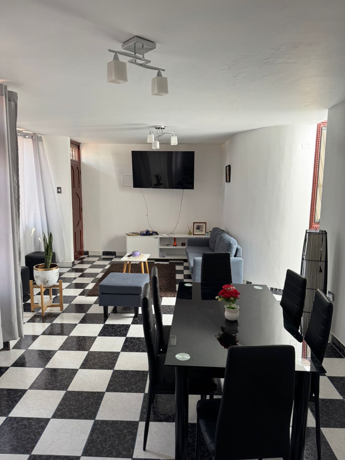 Dpto Duplex con patio, terraza, lavandería, 2 cuartos el principal con tv 43", 6 camas, 2 baños completos, agua caliente, cocina, comedor, sala tv 43"Youtube, Wintv y Neflix, cochera