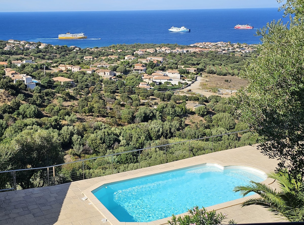 Maison en pierre de la région entièrement construite par le propriétaire respectueuse de l'environnement entre mer-montagne et piscine (classement 5 étoiles ). A 5 mn des Gorges de l'Asco, rivière, cascades . Vous serez à 25 mn des plus belles plages de Balagne, Ostriconi, Lozari. Dans un site préservé, au calme absolu avec une vue superbe .Ce logement est parfait pour une escapade en amoureux avec un accès privatif à la piscine à débordement des propriétaires. Internet fibre