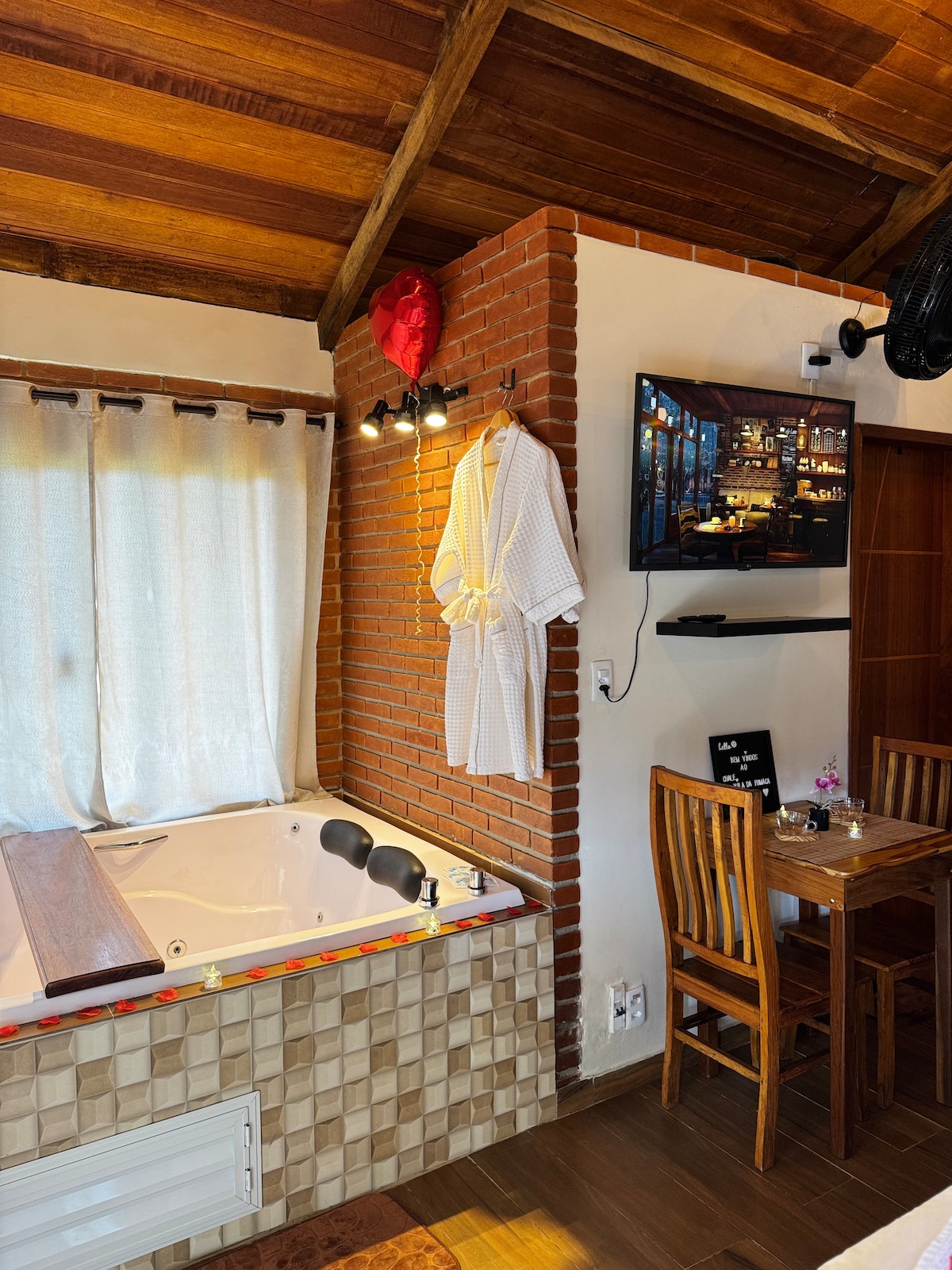 Experience the timeless charm of our exclusive A-frame cabin, a perfect retreat for those seeking the simplicity and beauty of rustic design combined with modern comfort. Enjoy unique experiences in our outdoor hot tubs and feel the warmth of the indoor heater on cold nights. The cabin is located on a unique and secluded lot, capturing the view of the Minas Sea right from the front deck, as well as large skylights for stargazing and moon gazing. 👉@cabana.dusk