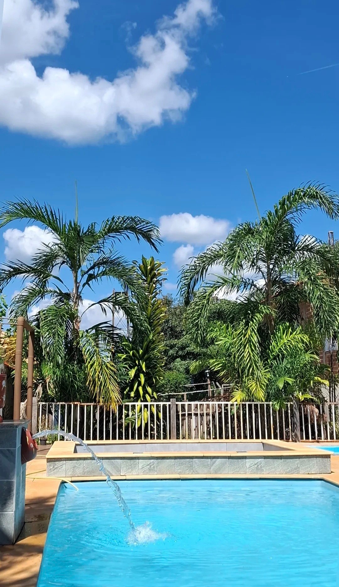 Sala 2 ambientes (estar e jantar), cozinha equipada com fogão, geladeira e microondas, 3 quartos, sendo 1 suíte, banheiro social, área de churrasco gourmet com fogão a lenha e churrasqueira, piscina e lavabo na área externa. Garagem para 3 carros. Ar condicionado na suíte e ventilador de teto na sala de estar e em um dos quartos. TV, geladeira, 1 cama de casal, 4 camas de solteiro sendo renovados, tudo estará funcionando e prontinho para sua hospedagem.