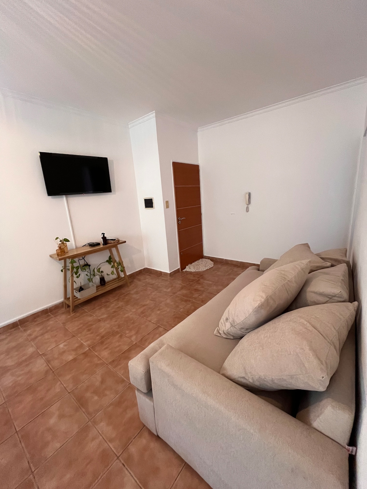 Departamento monoambiente, cálido con instalaciones nuevas en barrio residencial de Santa Rosa. A tan solo 15 min del centro de la ciudad. Ideal para quienes están de paso por la ciudad por su accesibilidad y cercanía con Av. Circunvalación. Cuenta con cama matrimonial o posibilidad de dos camas simples. Equipado con todo lo necesario para disfrutar de una estadía amena.
