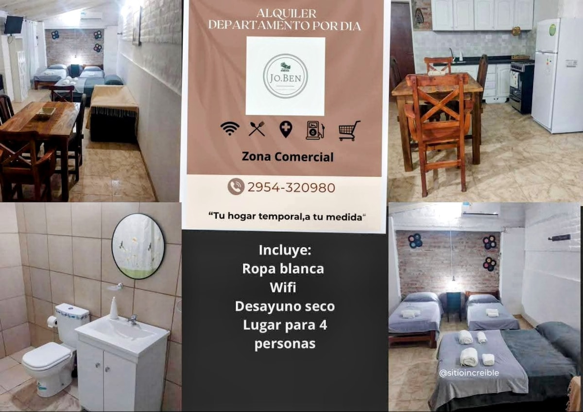 Bienvenido a Dalia Pampa, un departamento por día pensado para ofrecerte una estadía cómoda y funcional. Ideal para viajes cortos, trabajo, descanso o quienes necesiten alojarse cerca del Hospital. Ubicado en una zona tranquila de fácil acceso: - A solo 850 metros de la Ruta Nacional 35 - A 1 km del Aeropuerto de Santa Rosa - A 1,2 km del Hospital Rene Favaloro Disfruta de un espacio cuidado, con atención personalizada y todos los servicios necesarios para una estadía placentera en La Pampa.