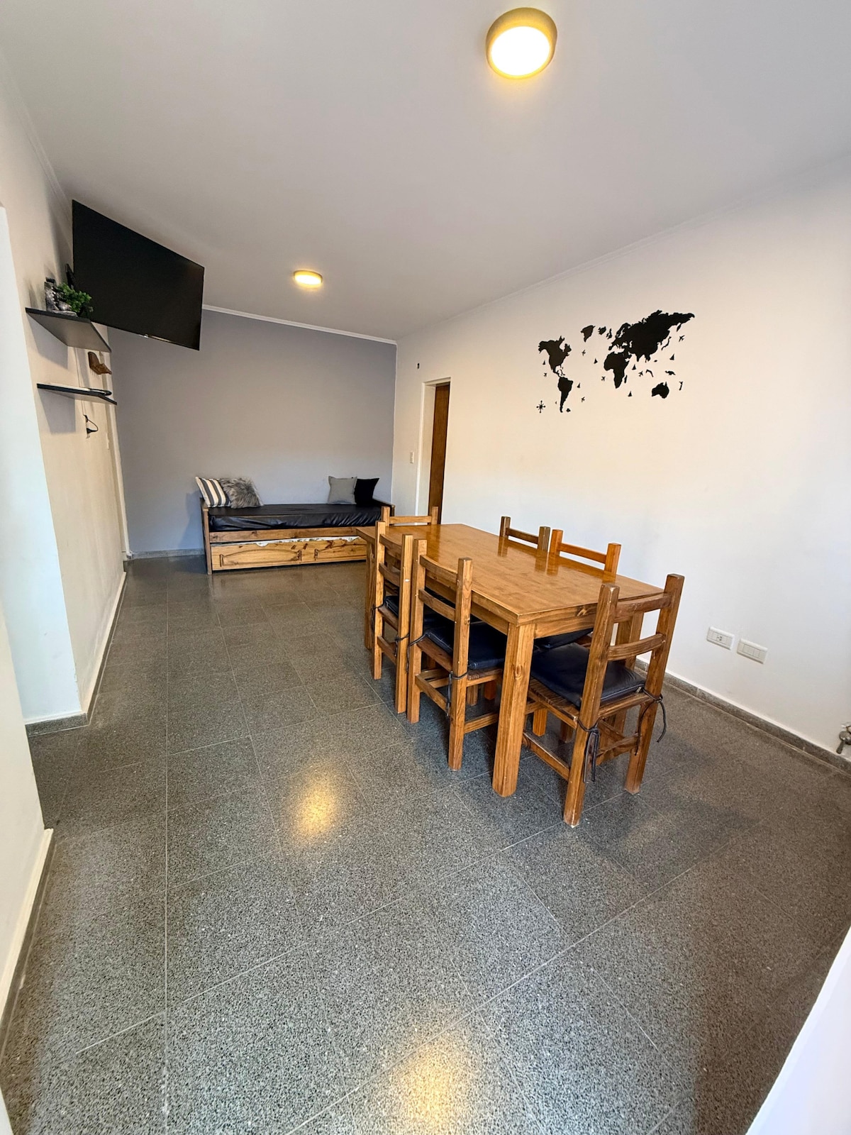 La Pausa Acogedor dpto totalmente equipado, ideal para estadías cortas. Cuenta con dormitorio con ropa de cama, baño privado con agua caliente y toallas, amplio living comedor con sofá cama, cocina integrada con elementos básicos y estacionamiento propio. aire acondicionado en todos los ambientes. Su patio y espacio de asador se destacan por un caldén centenario que lo hace único, brindando un entorno natural y especial. Perfecto para viajes de descanso o trabajo en una ubicación accesible.