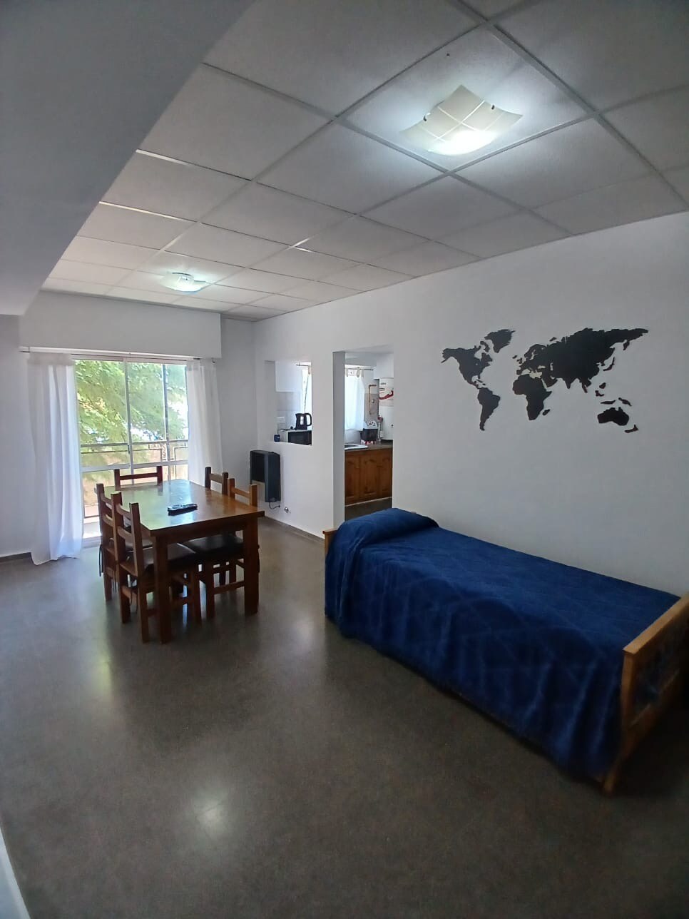 Departamento monoambiente, cálido con instalaciones nuevas en barrio residencial de Santa Rosa. A tan solo 15 min del centro de la ciudad. Ideal para quienes están de paso por la ciudad por su accesibilidad y cercanía con Av. Circunvalación. Cuenta con cama matrimonial o posibilidad de dos camas simples. Equipado con todo lo necesario para disfrutar de una estadía amena.