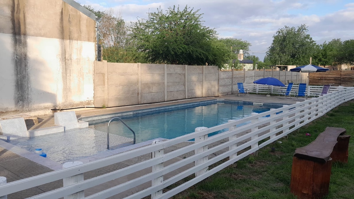 Descubre la serenidad de nuestra cabaña en zona de quinta Toay, La Pampa. Ideal para 4 personas, con piscina, parrilla y espacio verde. Habitación matrimonial y salón con dos camas. Cocina completa, lavarropas, heladera y aire acondicionado. Baño pequeño pero confortable con ducha escocesa. ¡Haz tu estancia inolvidable!