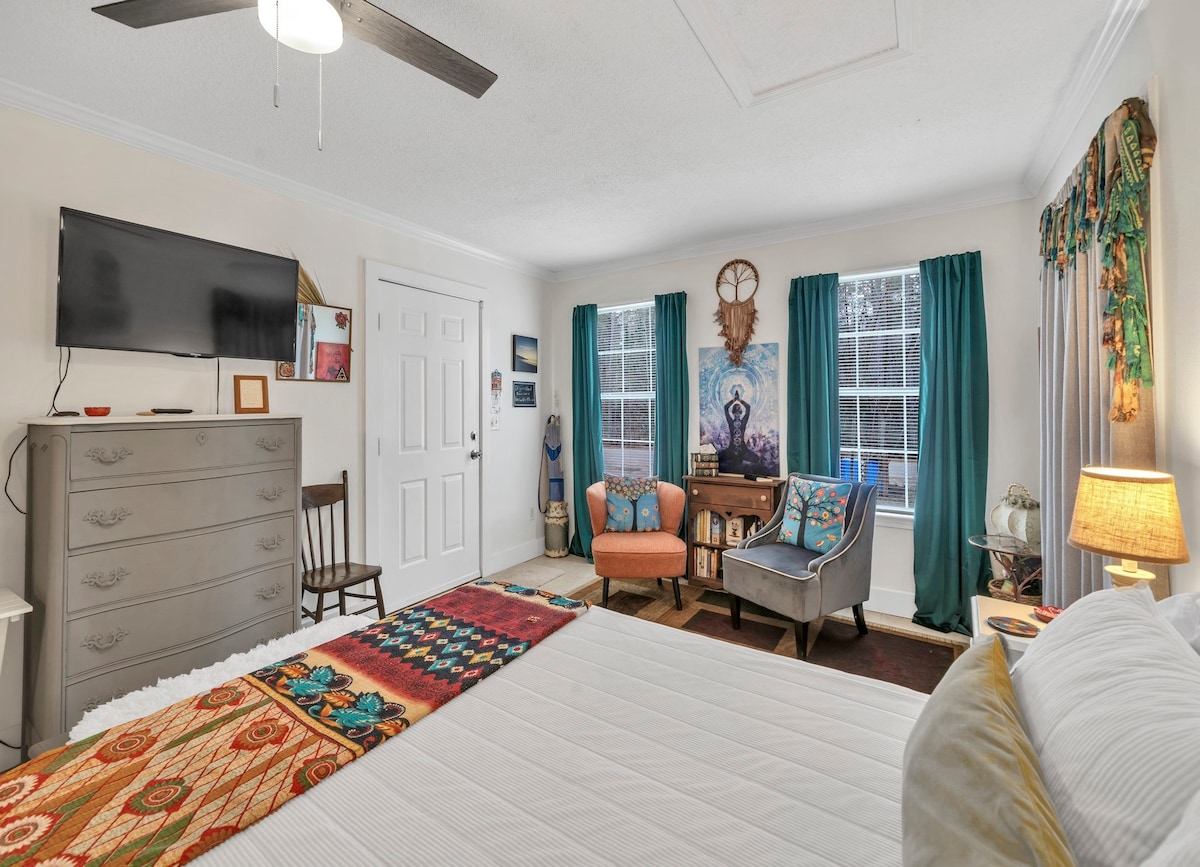 Small in stature but grand in design, this 30A beach house will wow you. Access to neighborhood pool, gym, & the beautiful white sand beaches a few blocks away. Small Waves is set in the Blue Mountain Beach area, which is well-known for its charm, its restaurants, & its famous ice cream shop. We have an EV car charger for electric cars (no extra fee) plus access to an electric golf cart (extra fee). Bedroom has a king size bed & twin bed & there are also 2 twin beds upstairs.