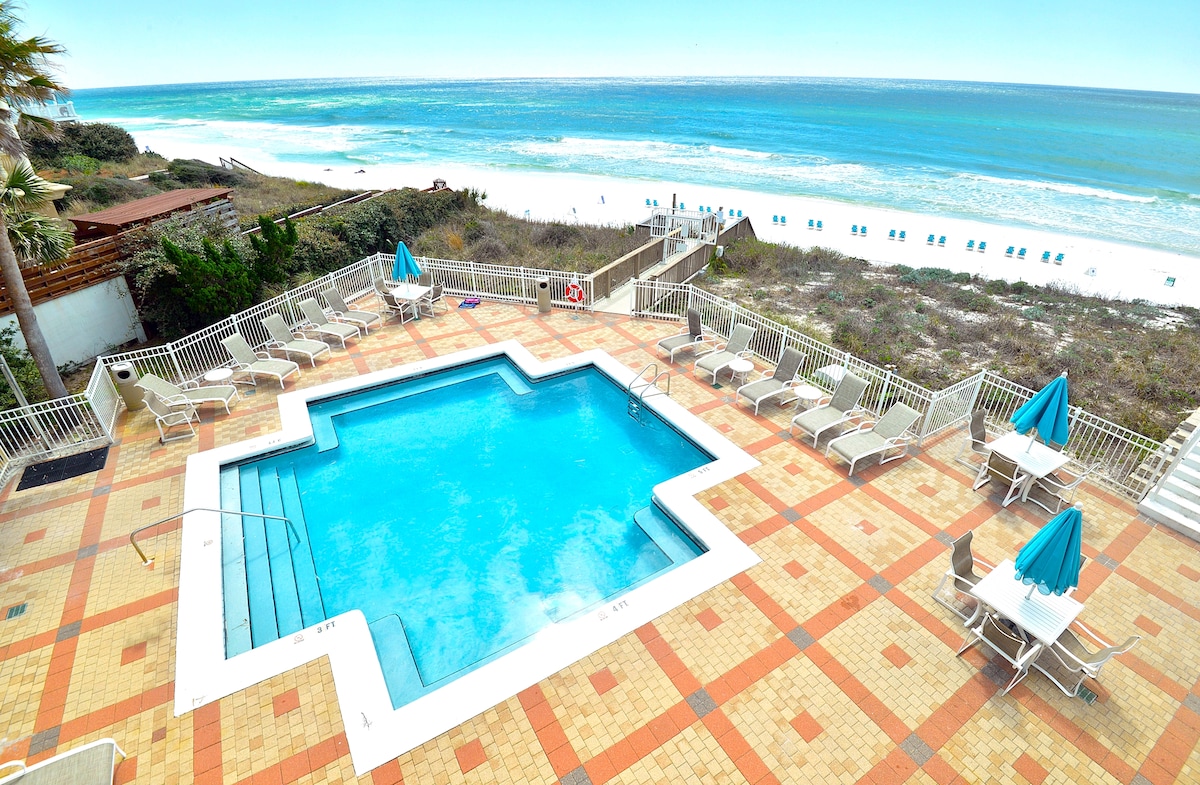 Welcome to our little piece of paradise in Seagrove! Our 2nd floor beachfront condo boasts breathtaking ocean views, private beach access, free parking, beach chairs, toys and umbrella and a fully updated interior for a comfortable and relaxing stay. Unwind in the open-concept living space, cook up a storm in the fully-equipped kitchen, and soak in the sun on your private balcony. With direct access to a private beach, you can enjoy endless days of sand, sea, and sunshine!