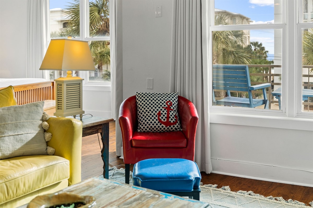 PLEASE read cancellation policy prior to booking. Welcome to this "SWEET SUITE" right in the heart of Seagrove on 30A! A perfect little studio space for couples...but if you have to bring the little one, we have a foldaway floor mat available that folds out to a twin size, ( just bring extra pillow & bedding for that!) More than enough floor space for a pack and play also. This 2nd floor studio space is just across the small two lane 30A highway run.. so just a short 3 min walk to the sand!