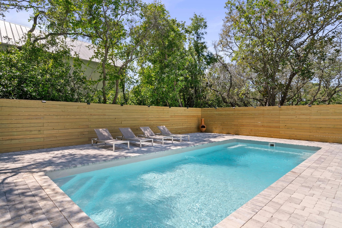 A private oasis situated among lush vegetation and gorgeous oak trees, this property is steps away from the bay and just a 5 minute car ride to all the magic of 30A and beach access. Unique finishes include a heated saltwater pool for those perfect nights in, and 2 picturesque outdoor showers. The main house features 3 beds/3 baths while the guest house features a bunk room with a full bath. This is truly a nature lovers’ paradise to relax in while enjoying all that 30A has to offer.