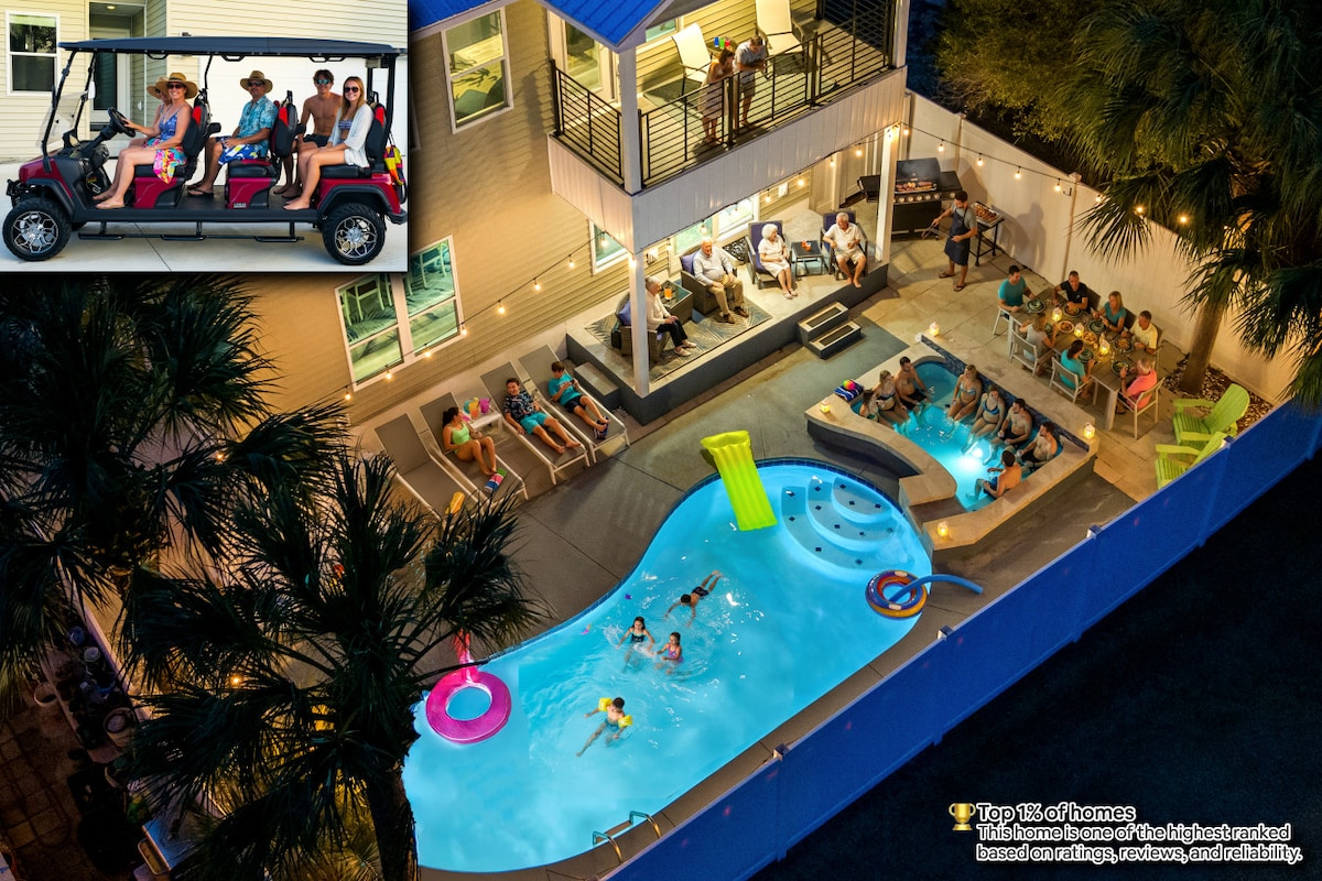 披头士度假屋,步行即可到达海滩、高尔夫球车、街机!