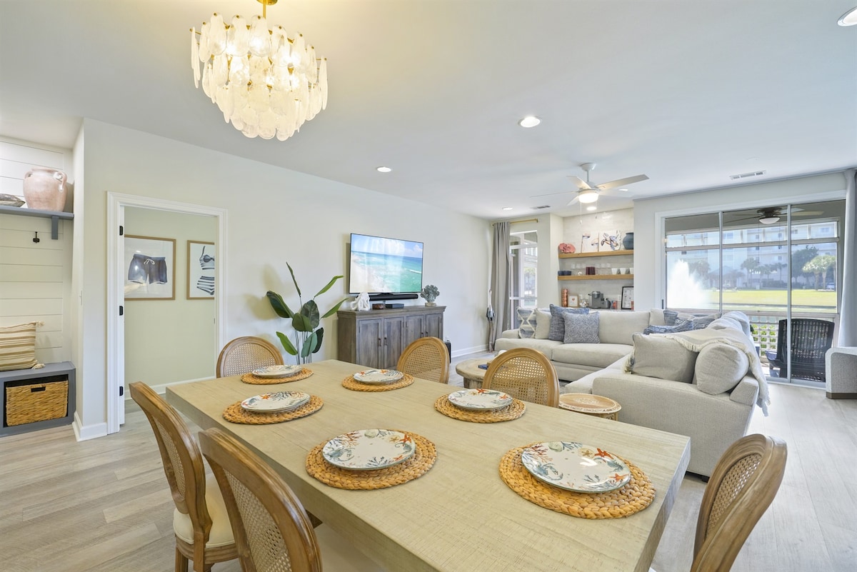 This Beautiful Villa is a 1 minute walk to swimming pool, 3 minute walk to the resorts private beach and Panhandles largest lagoon pool via the resorts walkway bridge. Resort is surrounded by a variety of restaurants and shops, many directly across the street from the resort entrance. Your patio looks out over the gorgeous golf course with a lBeautiful Pond and Fountain, where you can enjoy stunning sunsets, sunrises or watch a great golf game. Age Requirement at this resort is 25