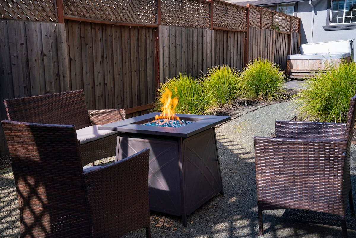 Discover your Wine Country sanctuary in this lush, design-forward Santa Rosa retreat. With a chef’s kitchen, a six-person hot tub, a fire pit, and Restoration Hardware furnishings, every detail is crafted for comfort and style. Perfectly located near wineries, Michelin-star dining, and redwood adventures, it’s ideal for families or friends seeking luxury and connection. Book your escape today. We are pet-friendly. Message us on Social Media at Inspired in Sonoma for Inspiration and Tips.