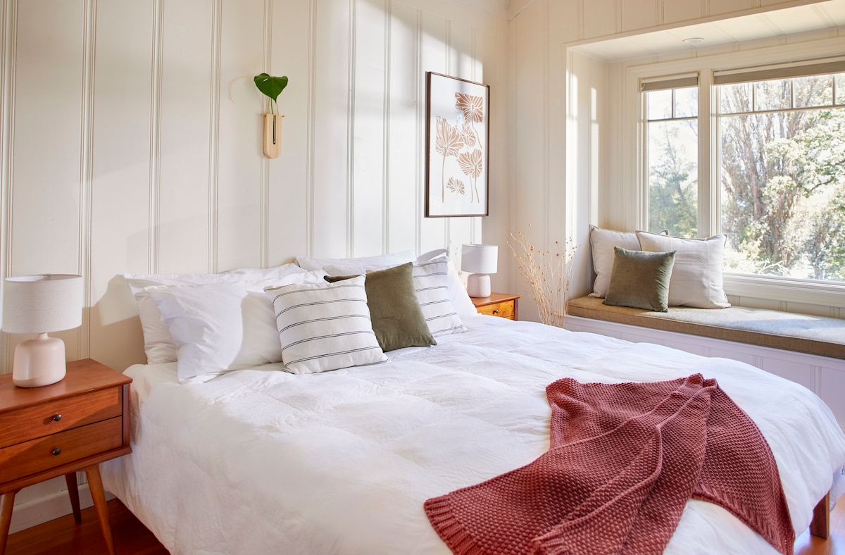 Retreat to your pet-friendly King Room with a private entrance and serene garden area. This charming space blends rustic charm with modern comforts. Your Stay Includes: ✔ King-size bed with luxurious bedding ✔ Complimentary bottled water, coffee & tea pods ✔ Wi-Fi & use of the Calistoga Wine Shuttle ✔ Private garden area ✔ Free parking & access to common areas including the guest lounge, kitchen, dining area, front porch, back garden Pet fee is an additional $49/night.