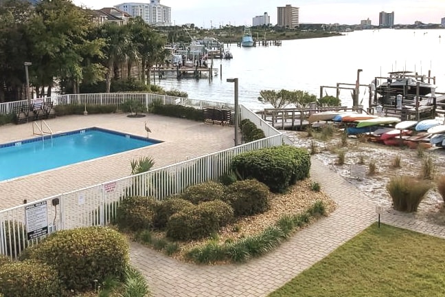 Come experience vacation paradise at "Sunshine Daydream" Located in the heart of Pensacola Beach. Perfect beaches, fantastic restaurants/bars, and shopping are only steps away. Enjoy pristine views of Little Sabine Bay from all over this magnificently renovated condo. Unwind on the 300 sq ft covered balcony and watch the sunset from the best location on the island! The complex hosts a large heated swimming pool, private beach, exercise room, dock, elevators, and a full time cleaning staff.